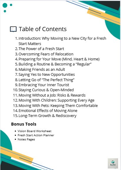 Ready for a fresh start? 🌍 This workbook is your trusted companion for navigating the challenges and opportunities of moving to a new city. Packed with motivational guidance, reflection prompts, affirmations, and practical checklists, it helps men, women, children, and even pets transition smoothly.